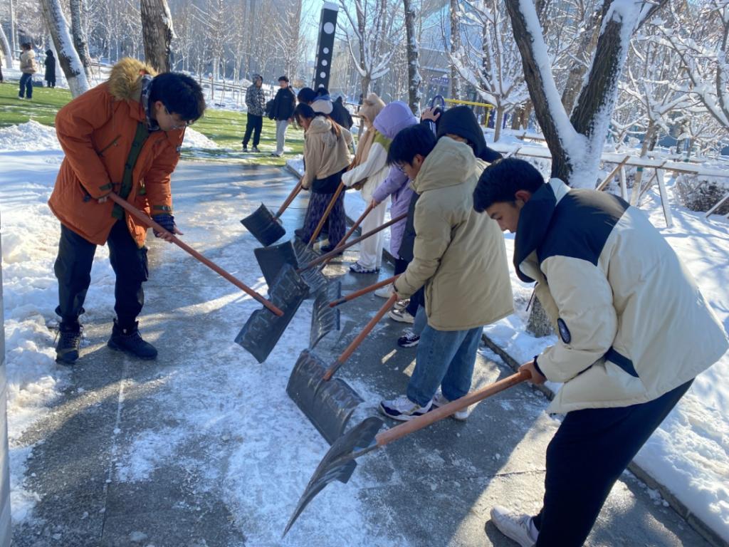 近日,大雪飘落吉师校园,雪后的校园银装素裹,分外美丽。为引导广大青少年树立正确的劳动观念,崇尚劳动、尊重劳动、热爱劳动,增强对劳动人民的感情,学院以雪为令,组织学生开展校园扫雪除冰劳动教育活动。此次扫雪除冰活动充分发挥党员、学团干部模范带头作用和志愿服务组织骨干引领作用,以“包片划区”形式做好分工,引领全院青年学生扎实开展劳动教育,展现青年担当。