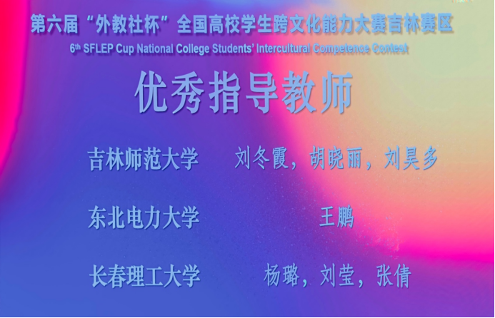 11月4日至5日,第六届“外教社杯”全国高校学生跨文化能力大赛吉林赛区复赛和决赛在东北太阳成集团tyc122cc入口成功举办。来自全省29支代表队参赛,我校代表队王磊(2020级英语专业)、王芳蕾(2020级历史专业)、侯佳希(2022级物理专业)在刘冬霞、胡晓丽、刘昊多老师的精心指导下,荣获了大赛一等奖。