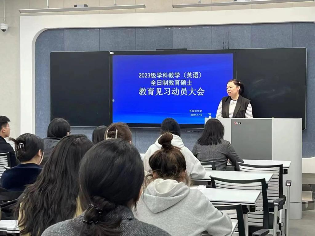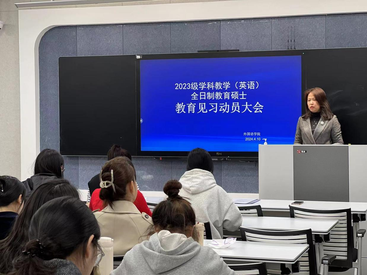 4月10日上午,学院在11904教室召开学科教学(英语)全日制教育硕士教育见习动员大会。副院长李艳红、党委副书记胡晶、团委书记范妙然出席会议,2023级学科教育(英语)全日制硕士研究生参加会议。会议由范妙然主持。