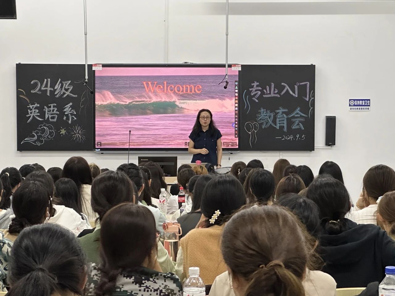 为了帮助新生增强专业认同感,树立专业自信,并做好学业规划,以便更好地适应即将到来的大学生活,9月5日,英语系在11114教室举办了新生专业介绍会。系主任胡晓丽出席并主持会议,全体新生及部分班代参加会议。