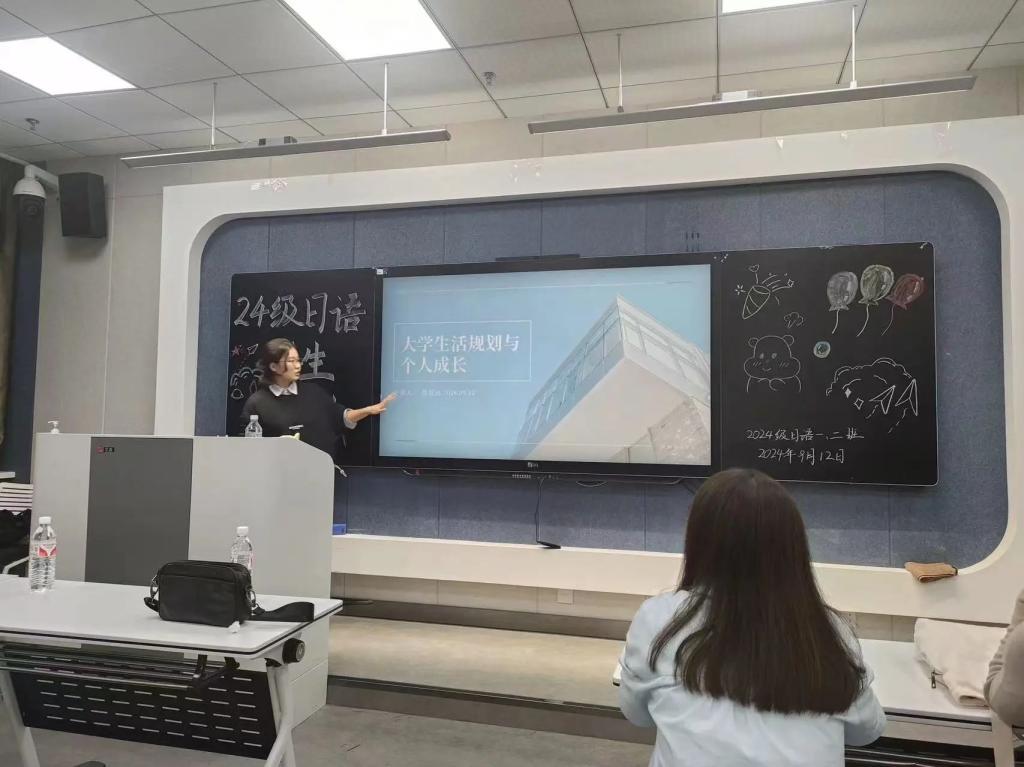 为增进新生间的相互了解,激发大家对日语学习的热情,同时也为即将开启的大学生活奠定坚实的基础,9月12日晚,日语系在11908教室举办了2024级日语新生学业培训会。日语系主任刘丽芳,专任教师聂亮、李雯、金煜出席会议。日语系全体新生及部分班代参加会议。会议由刘丽芳主持。