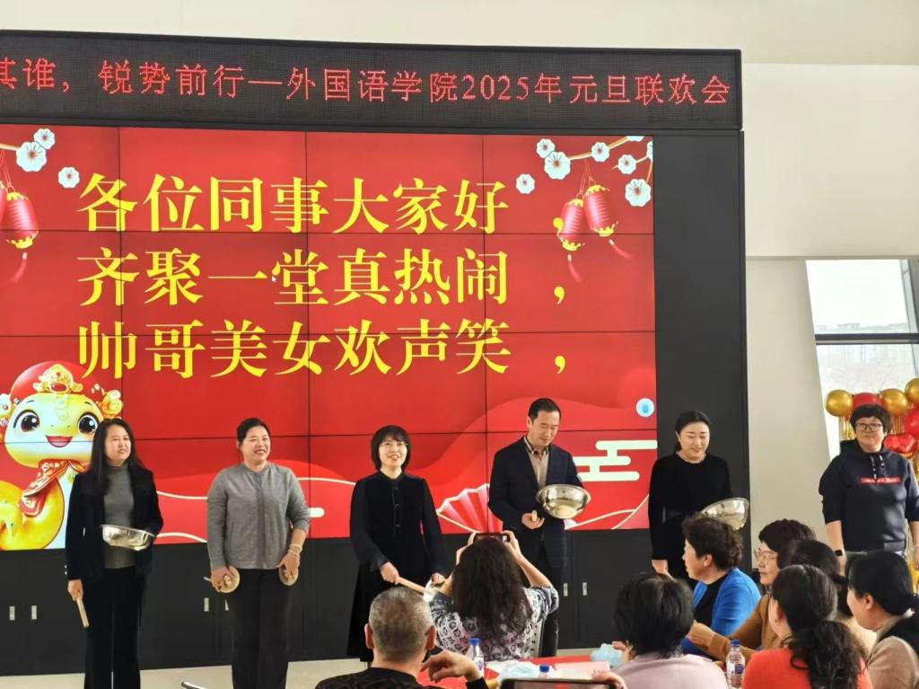 欢声笑语庆元旦,团结奋进迎新年。12月25日下午,学院在双创4楼报告厅举办“‘蛇’我其谁,锐势前行”2025年元旦联欢会。院长李淑华、党委书记韩强、副院长赵岩、李艳红、潘雁、党委副书记胡晶出席活动,全体教职工参加活动。聂亮、刘冬霞主持联欢会。