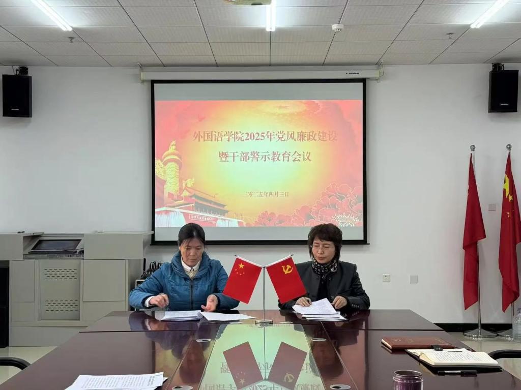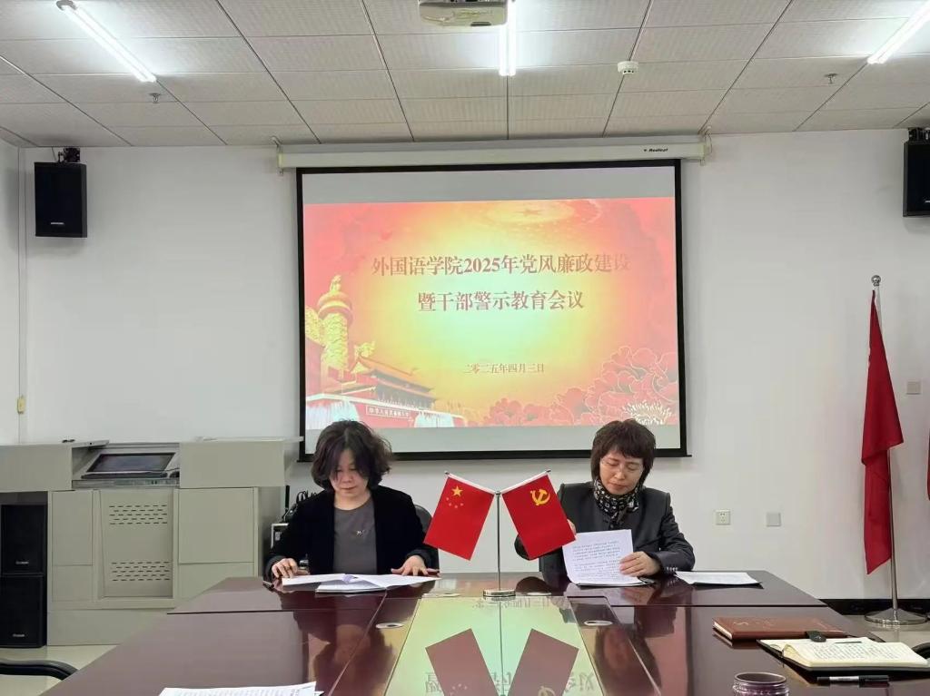 会前,与会人员集中参观了吉林太阳成集团tyc122cc入口廉洁自律教育基地。会上,李淑华同学工办、办公室、各专业签订《外国语学院教职工廉洁自律和师德师风承诺书》;赵岩传达了学校2025年党风廉政建设暨警示教育会议和干部勤政廉政集体谈心谈话会议精神及学校2025年纪检监察工作要点。