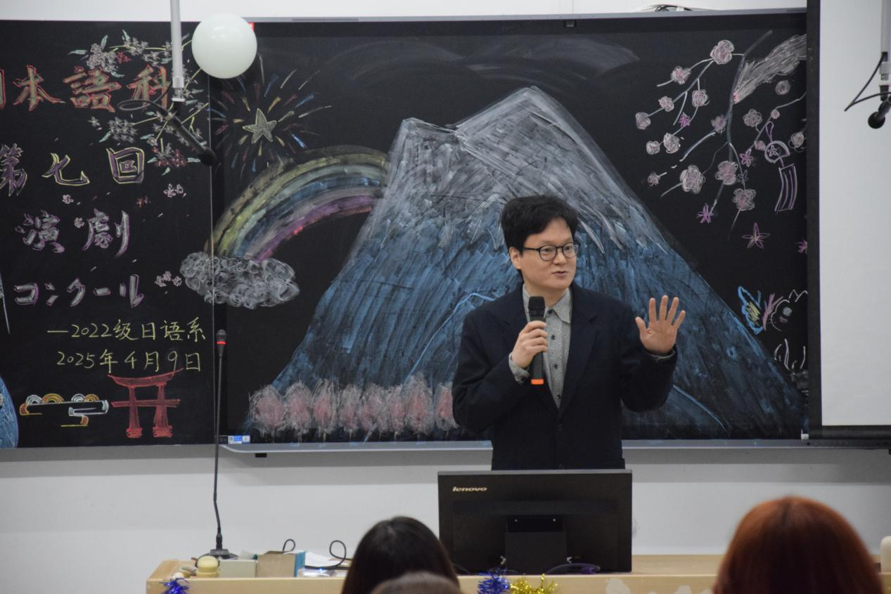 4月9日晚,日语系在11114教室举办第七届戏剧大赛,日语专业师生齐聚一堂,共同见证这一场充满语言魅力与创意火花的舞台盛宴。此次比赛面向2022级学生,大赛不仅是语言学习成果的集中展示,更是一场融合表达力、想象力与团队精神的青春庆典。