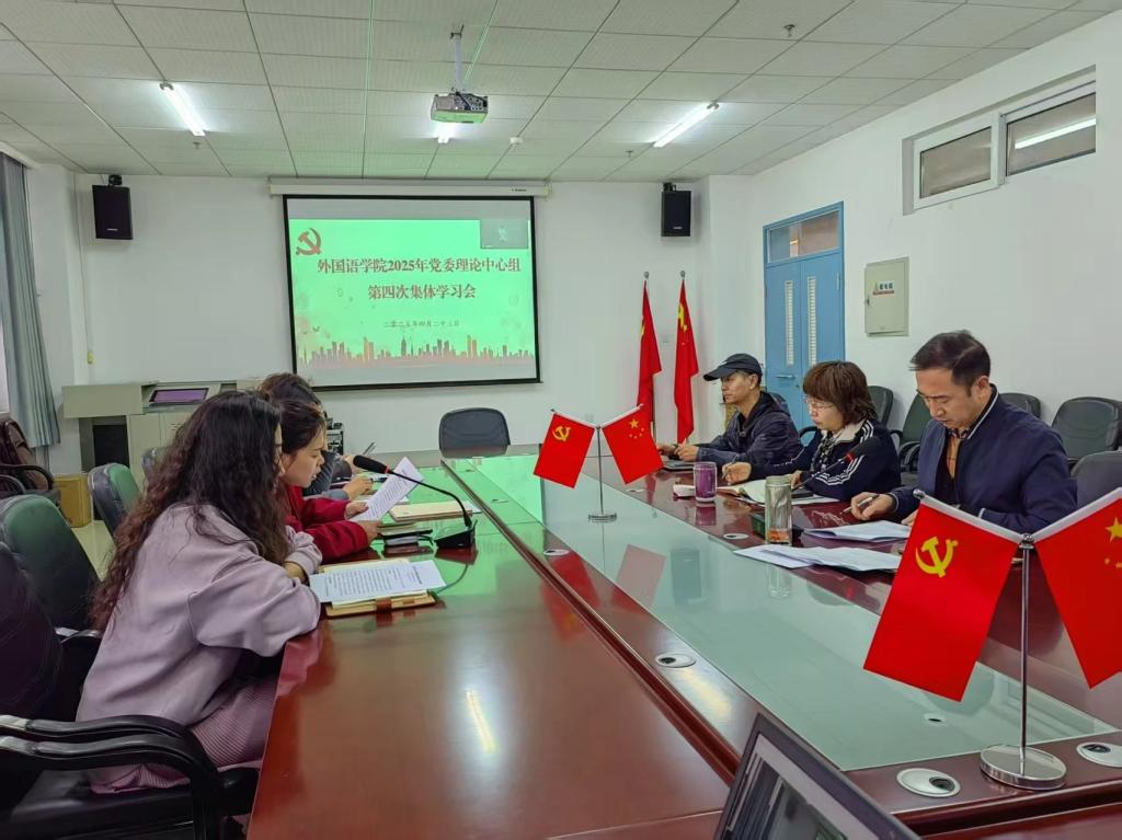 4月23日下午,学院在双创2楼会议室召开外国语学院2025年党委理论学习中心组第4次学习会,学院党委委员、领导班子、各支部书记参加会议,各班子成员围绕《国家安全宣传教育专题》开展学习交流。会议由党委书记韩强主持。