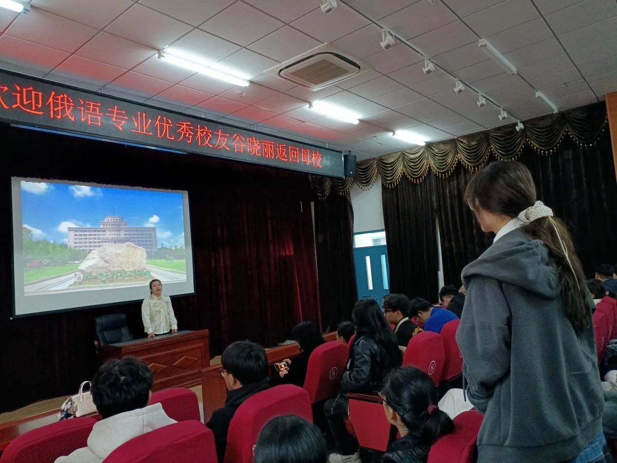 4月29日上午,学院在11204报告厅举办大学生自主创业专题报告会。本次活动邀请我院2009届俄语专业校友、北京鸿馨谷贸易有限公司总经理谷晓丽担任主讲嘉宾,为俄语专业本研学生及任课教师分享创业经历与职业规划心得。报告会由俄语系主任王春红主持。