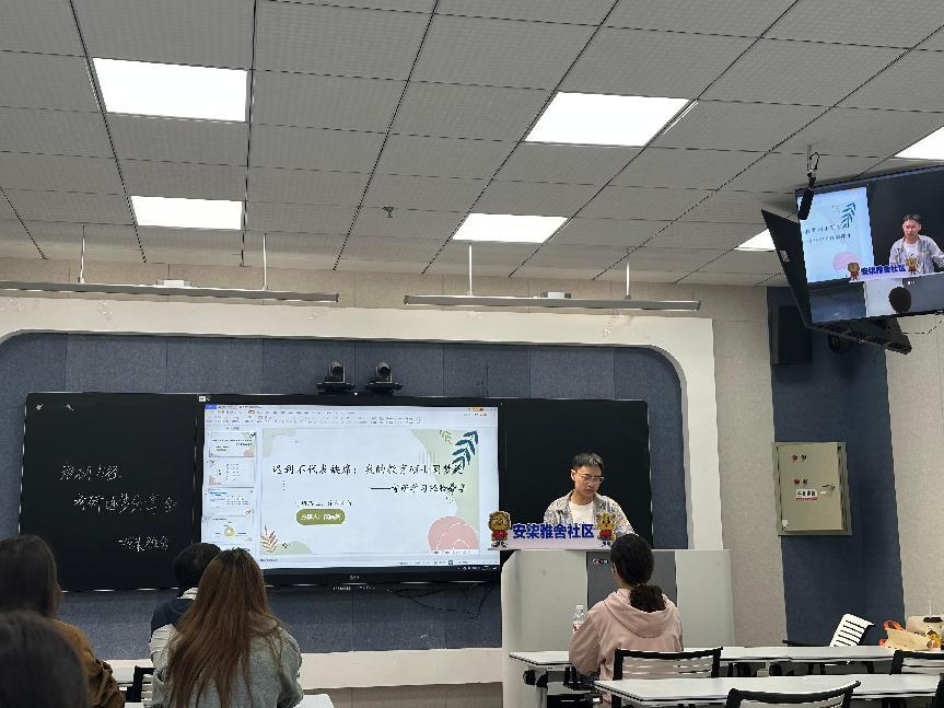 为帮助在校学生明晰考研方向、掌握备考策略、提升学习效能,5月14日下午,学院在11教904-1举办“一站式”社区活动——考研经验分享会。活动特邀4名2025届考研考生代表担任主讲嘉宾,活动吸引众多同学参与。