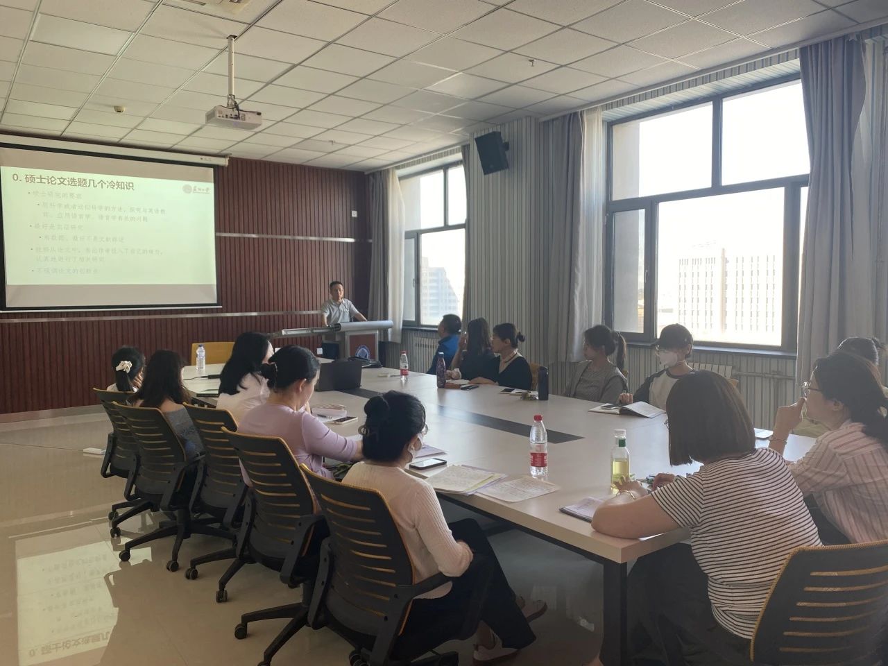 刘宏刚从“硕士论文选题几个冷知识、研究题目从哪里来、外语学习心理研究概况及动向、外语学习心理研究的主要议题、外语学习心理研究的常见选题类型”等方面进行分析讲解,并与现场研究生互动交流,就研究生学习与研究给出中肯建议。本次讲座使得研究生们及青年教师们明确了学习与研究的努力方向,受益匪浅。