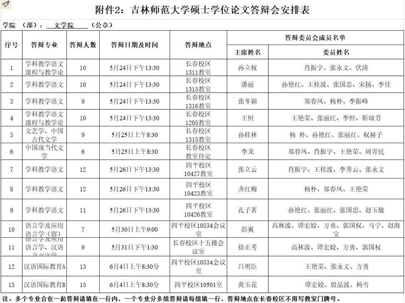 文学院硕士学位论文开题、答辩安排(2018-05-18)