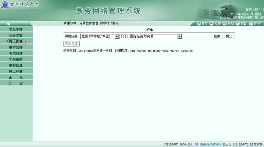 9.退选如果在选课过程中出现错选的情况,可以进行退选。首先选中要退选的课程,然后单击退选按钮,就可以完成退选课程。