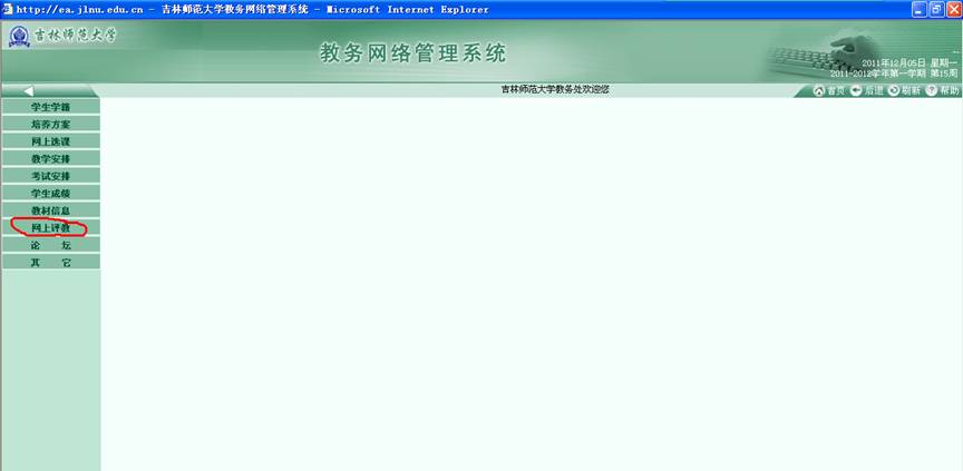选择网上评教按钮,进行网上评教环节。然后点击红圈内的提交教学评价表。