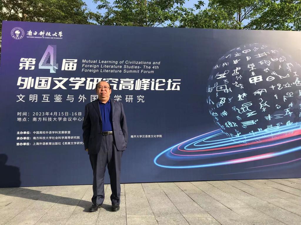 2023年4月15日,“文明互鉴与外国文学研究:第四届外国文学研究高峰论坛”在南方科技大学举行。我校比较文学与世界文学学科负责人王钢副教授与来自南方科技大学、上海外国语大学、南开大学等国内高校的近80余位专家学者一起应邀参与此次高峰论坛。