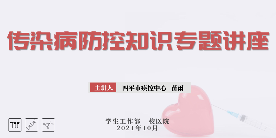 10月20日,学校邀请四平市疾控中心副主任苗雨为全体在校学生作秋冬季传染病预防知识专题讲座。讲座采取线上和线下相结合的方式进行,相关部门负责人、全体在校学生10000余人参加。