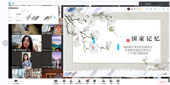 为深入贯彻习近平总书记“要把红色资源利用好、把红色传统发扬好、把红色基因传承好”的重要指示精神,学习革命先辈的先进事迹,赓续红色血脉,从历史中汲取前进的智慧和力量,激发全体学生的爱党爱国热情,同时进一步丰富疫情期间学生文化生活,我校于4月16日至4月18日组织全体学生线上观看专题纪录片《国家记忆》。各学院积极响应号召,组织线上班会等活动,同学们都积极参与,热情高涨。