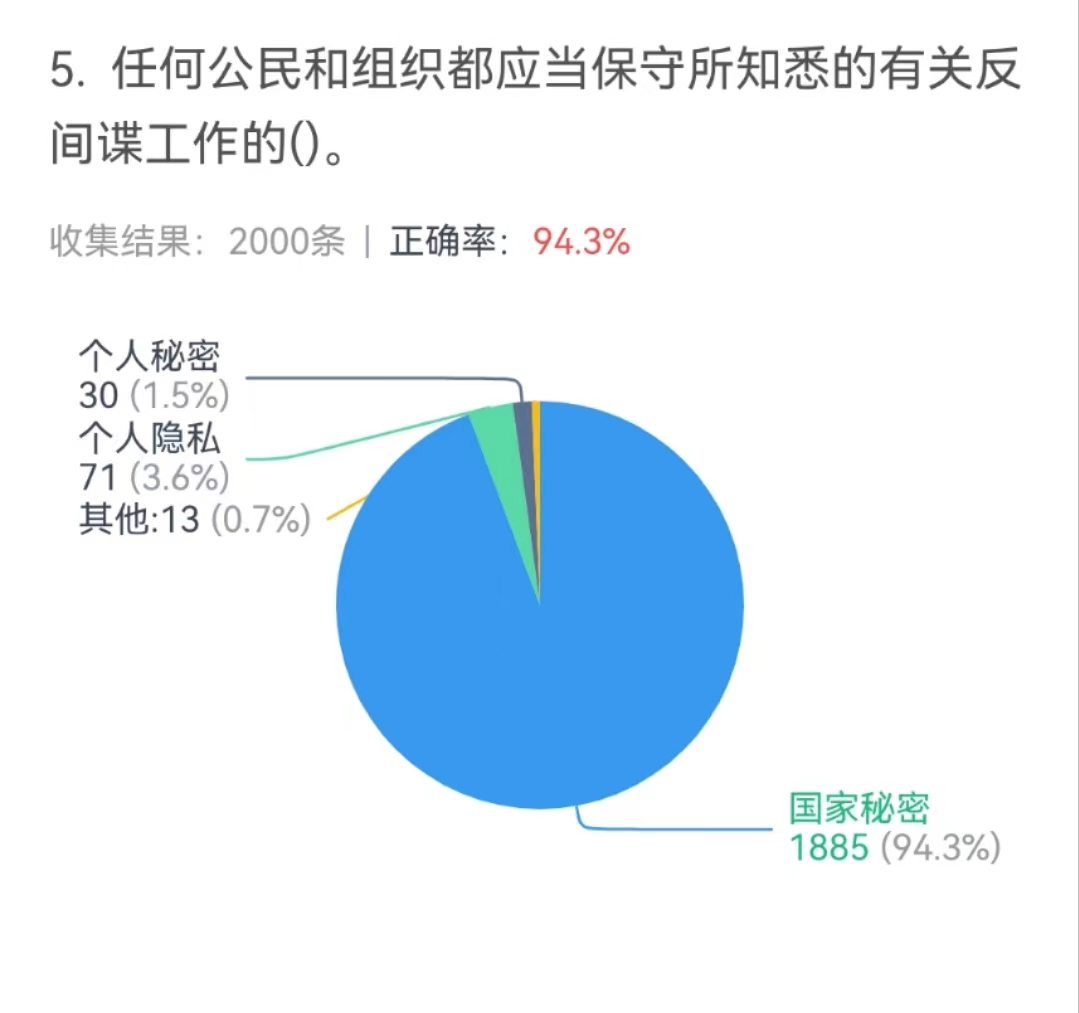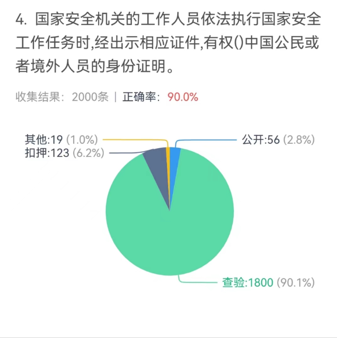 学校始终高度重视国家安全教育工作,牢牢抓住“全民国家安全教育日”这一教育契机,通过举办网上知识竞赛的形式,宣传国家安全知识,我校学生积极响应号召,共计6035个学生参与到知识竞赛中。