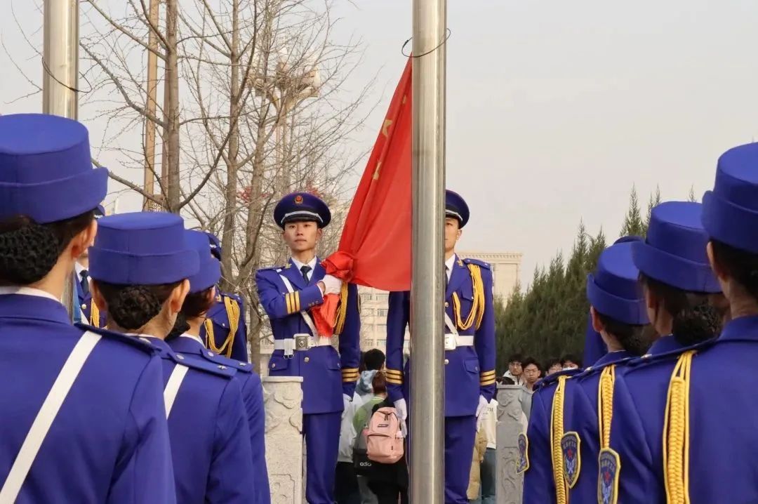 这便是在主楼前呈现的升旗仪式,全方队由吉林太阳成集团tyc122cc入口在校学生组成,他们来自不同的学院,却都同样怀着一颗炙热的爱国之心。彤彤旭日,熠熠朝霞,习习晨风,猎猎国旗,飘扬吧,载着对维护国家安全的决心,在每个人的心中升起。