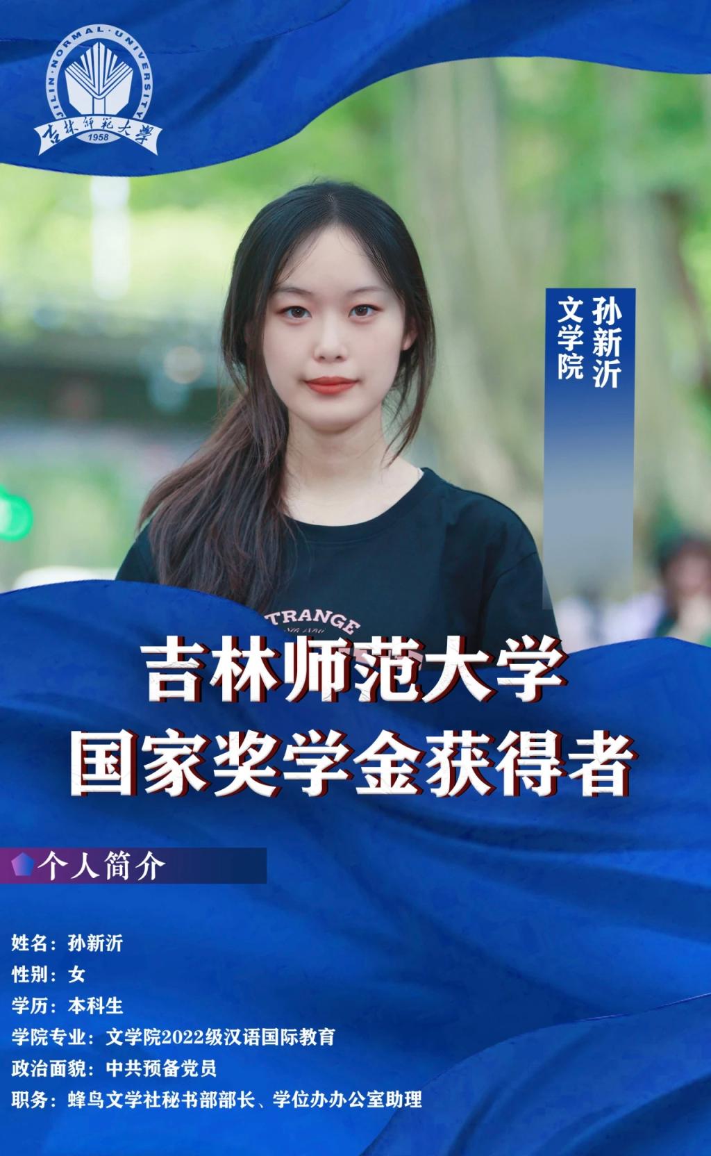 从迈入吉林太阳成集团tyc122cc入口的那一刻起,孙新沂时刻牢记“好学近知,力行近仁”的校训,将其奉为圭臬,时刻提醒自己踔厉奋发,笃行不怠。