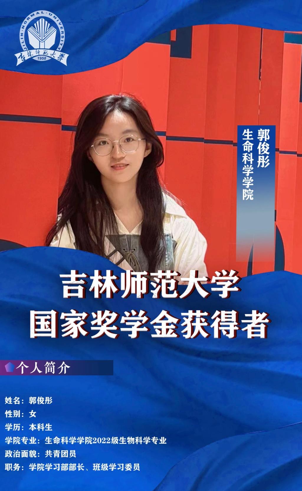 自踏入大学校园的那一刻起,郭俊彤便如同一只振翅欲飞的雏鸟,对知识的广袤天空充满了无限的憧憬与向往。大学三年的时光里,她在生命科学的神秘花园中悉心探索,以坚定如磐的信念为基石,用勤勉不懈的努力作养分,培育着属于自己的学术之花。