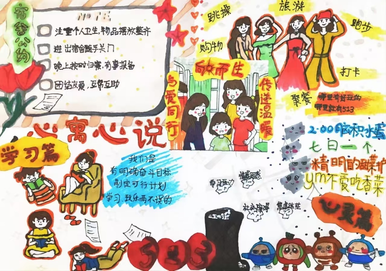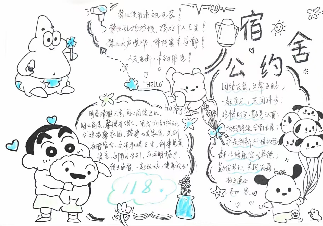 以诚相待共绽情谊之花,依规而行守护和谐之寓。为强化寝室成员的规则意识,激发创新创造活力,营造文明和谐的居住环境,我院社团联合会秘书处和学生会生活事务部联合举办“公约共筑,和谐之寓”寝室文化暨杉书别苑“一站式”学生社区系列活动。此次活动以寝室文化为主题,通过手绘寝室公约海报设计,展示寝室文明风貌,形成师生互动、寝室联动的文化氛围。以画传约,心连心共育寝室之谊;从知到行,手牵手筑牢规则之基。投票环节火热开启啦!快来瞧瞧这些凝聚着心血与创意的海报吧~每一张都有独特的故事与创意!
