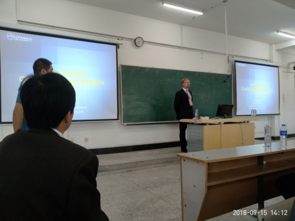 双方就我校信息技术学院电子信息工程专业中外合作项目运行情况深入交换了意见。并与我院中外合作办学项目2018级新生见面交流。我院中外合作办学项目电子信息工程专业2018级新生,对美国拉特诺大学来宾表示热烈地欢迎。见面会上Alan Clipperton 副校长介绍了拉特诺大学的概况、特色以及就业前景,并积极与学生互动。我院新生就拉特诺大学的招生要求、主要课程、人文环境等相关话题进行提问,Alan副校长和Larry院长耐心地做了解答。
