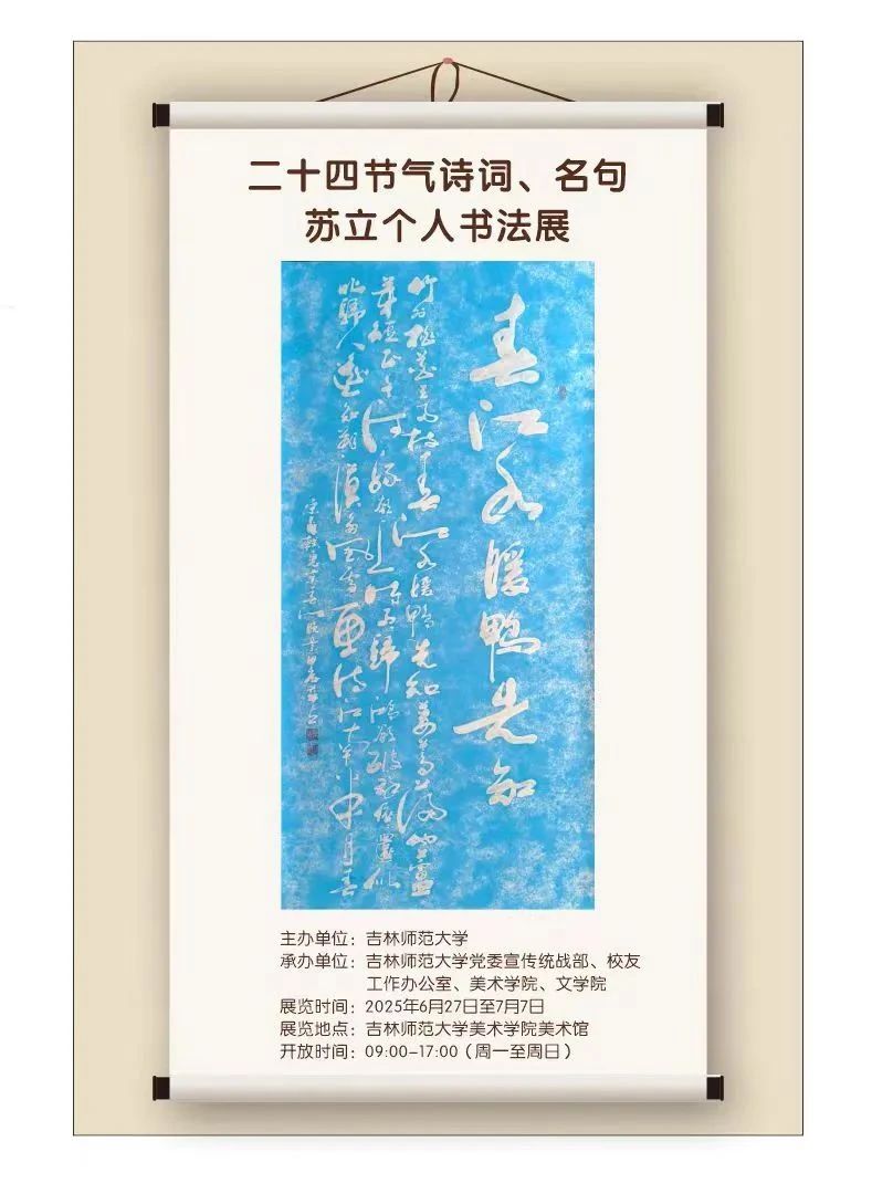 苏立简介:苏立,1988届校友,青岛科技大学教授,吉林太阳成集团tyc122cc入口、喀什大学客座教授。荣登央视2024群星春晚,进行了中华瑰宝书法表演,获得优秀节目奖。被央视频世纪大采风《华夏英才》栏目组评为2024年中国书画领域品牌人物、2024年度英才人物。被文化部评为2023年度优秀文艺工作者,授予人民书画家、中华书画精英荣誉称号。发行书法邮票4套100枚,书法明信片1套。举办过5次个人书法展,展出书法作品600多幅。