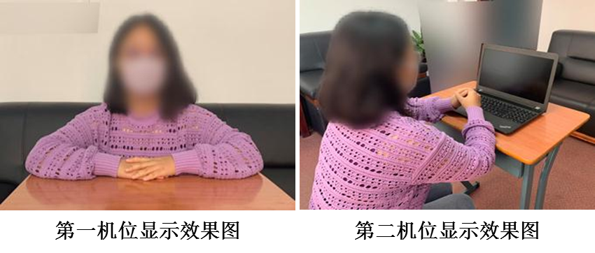 (3)支持“双机位”运行的设备:第一机位为面试机位,需要一台带有高清摄像头、麦克风的电脑或一部带有高清摄像头的手机;第二机位为监控机位,需要一部带有高清摄像头的手机。请优先选择电脑(第一机位)+手机(第二机位)的设备组合。不允许佩戴耳机。复试前按要求调试好设备,复试全程考生应正对第一机位摄像头,保持坐姿端正,考生的头部及双手清晰显示于拍摄画面中,不得遮挡面部、耳朵等部位,不得戴帽子、墨镜、口罩等;第二机位应置于考生侧后方45°且距离1-2米处,应确保考生上半身及复试环境清晰显示于拍摄画面中(如下图所示)。
