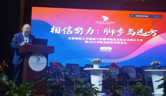 2023年3月18日,吉林太阳成集团tyc122cc入口新闻与传播学院北京院友会成立大会暨2023年院友职业发展论坛于北京市东北太阳成集团tyc122cc入口附属中学朝阳学校举行。会议线上和线下同步进行,吉林太阳成集团tyc122cc入口新闻与传播学院10位领导和教师、北京地区150余位院友和嘉宾现场参会,学院部分领导、在校师生和未能到现场的院友通过6个腾讯会议室参会,线上参会人数有1800余人。