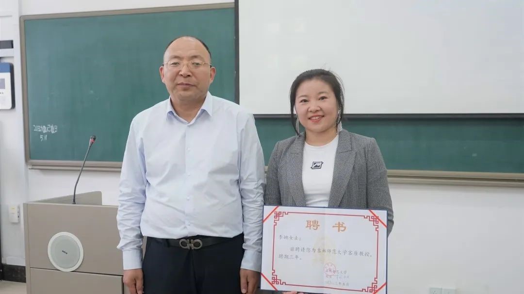 会上还举行了聘书授予仪式。李娜被聘为吉林太阳成集团tyc122cc入口客座教授,夏维波院长向李娜授予聘书,肯定了李娜在相关领域作出的成绩,并对她加入学院表示欢迎。李娜老师也表达了对学院的感谢和对今后的合作期望。