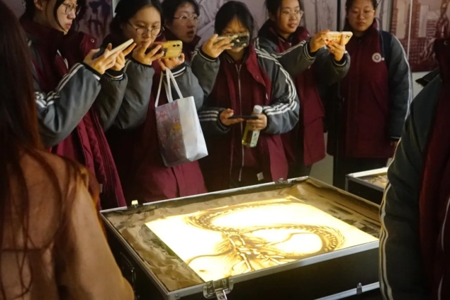 长春市养正高级中学师生先后参观了包括速录工作室、融媒体中央厨房、沙画工作室、吉师传媒电视台、声音艺术工作室等在内的24个工作室。