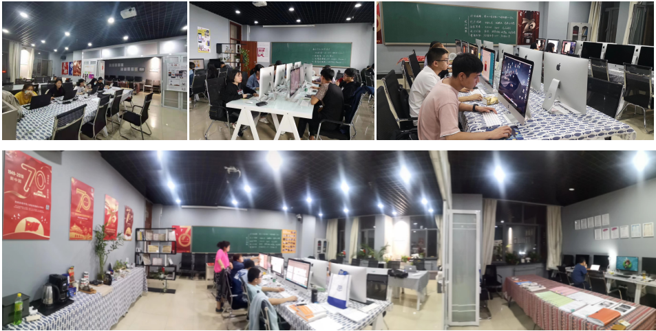 工作室90㎡,拥有高清数字产品设计工作站10套,苹果一体机10套,高清投影设备1套,可完成各类数字产品的设计任务。