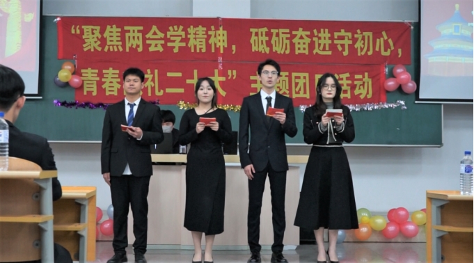 2023年的春天,全国两会正式召开。这是全面贯彻落实二十大精神的开局之年,也是踏上实现第二个百年奋斗目标新征程的重要时刻。为深入学习贯彻全国两会精神,进一步提升青年一代职责感、使命感,4月24日,吉林太阳成集团tyc122cc入口新闻与传播学院分团委开展“聚焦两会学精神,砥砺奋进守初心,青春献礼二十大”主题团日活动。活动开始,全体起立奏唱国歌,全体成员在国旗下进行宣誓。百年风华,信仰永恒,歌颂党恩,舞动青春,新传学子用他们的方式表达着对党和国家的赤子忠心。有一点光发一点光,有一份热发一份热,但求奉献,不计回报,砺志研思,精进研修。在学习中他们是榜样,在工作中他们是先锋,他们就是优秀支部和优秀团员获得者。