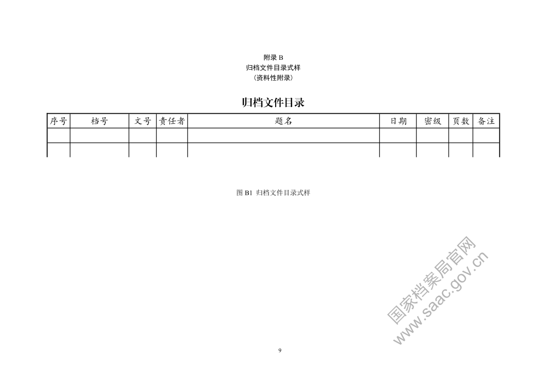 5.5.3 归档文件目录推荐由系统生成或使用电子表格进行编制。目录表格采用 A4 幅面,页面宜横向设置(见附录 B 图 B1)。