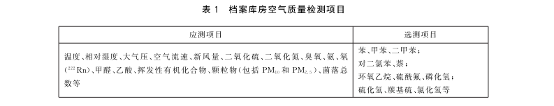 档案库房空气中与档案保管和人体健康有关的物理、化学、生物和放射性参数。