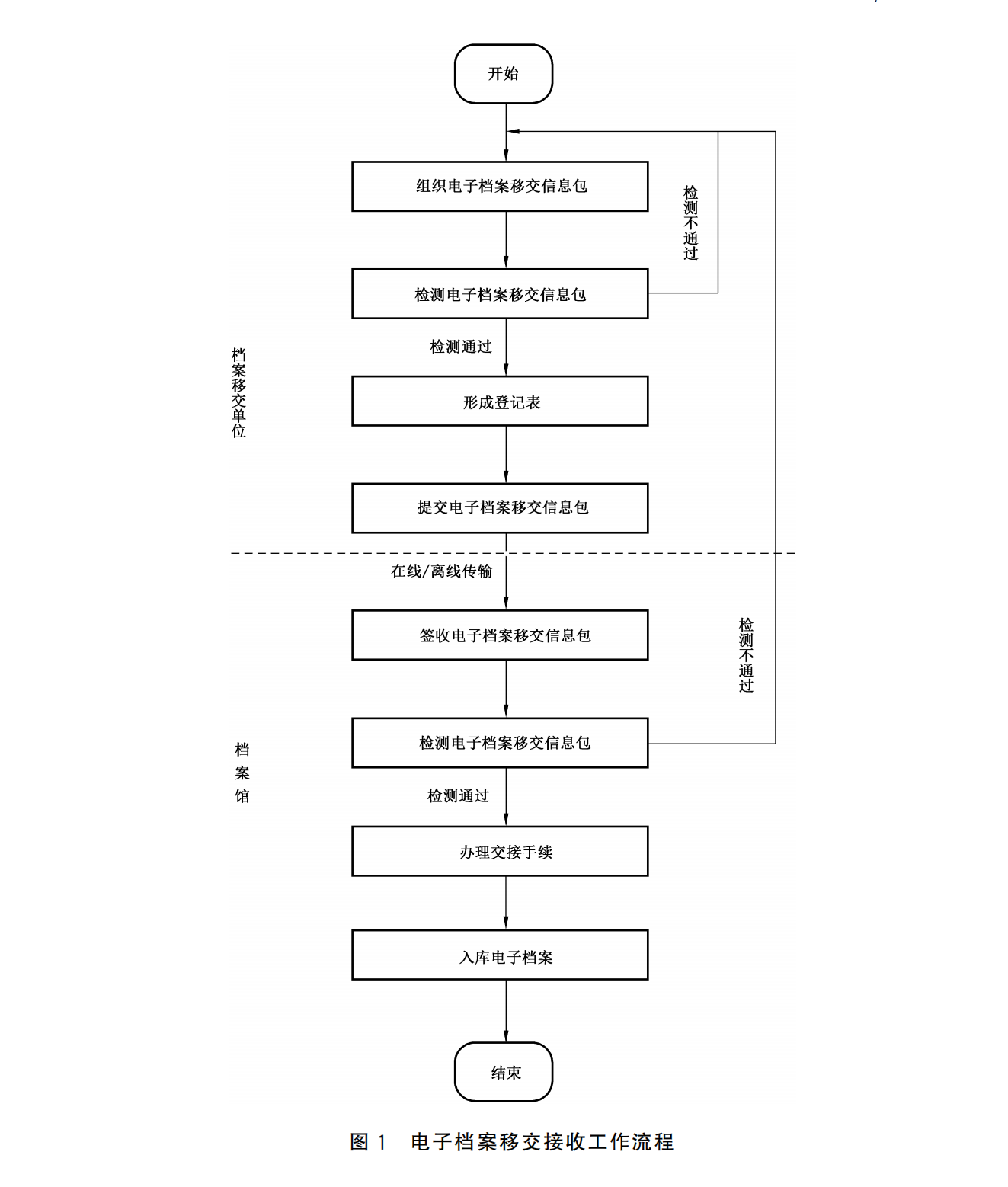 检测合格后,档案馆与档案移交单位应办理电子档案交接手续,填写完成《电子档案移交接收登记表》(见附录 C),由交接双方确认,各自留存。