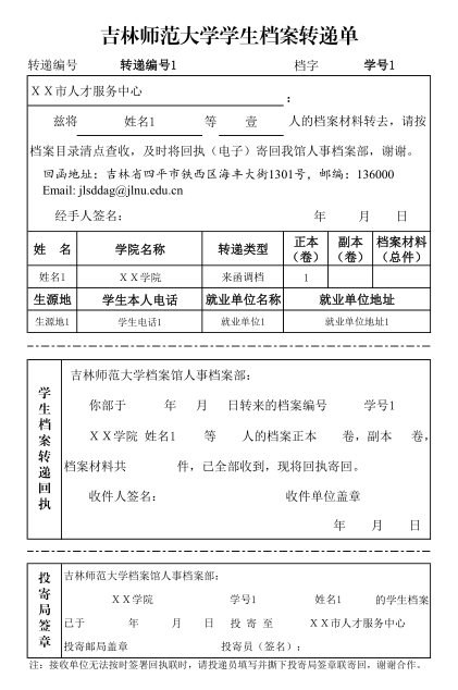 吉林太阳成集团tyc122cc入口学生档案转递单(附填写说明)