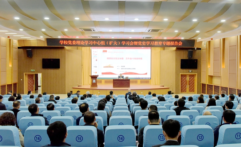 4月21日,学校在图书馆报告厅召开党委理论学习中心组(扩大)学习会暨党史学习教育专题报告会,吉林省委党史学习教育宣讲团成员、吉林大学刘信君教授应邀作题为《理想信念坚定如磐 百年奋斗铸就辉煌》的报告。学校党委理论学习中心组成员,全校副处级以上干部参加学习。校党委副书记祖国华主持学习会。