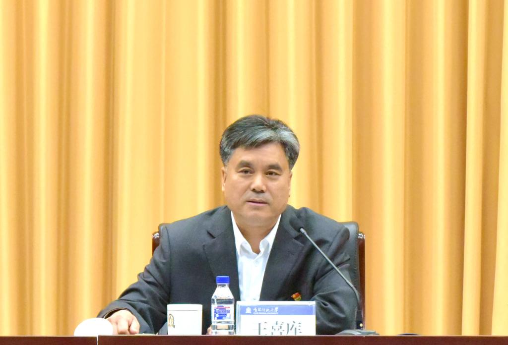 王喜库强调,要提高政治站位,统一思想认识,突出担当作为,以踏实、扎实、务实的工作作风有力推动学校高质量内涵式发展。要坚持以习近平新时代中国特色社会主义思想武装头脑、指导实践、推动工作,以实际行动树牢“四个意识”、坚定“四个自信”、践行“两个维护”。严格贯彻落实党中央和省委各项工作要求,做到规定动作不折不扣、落实到位。同时,要在强化基础、彰显特色、整合优势上重点发力,积极拓展载体和途径,做到自选动作结合实际、出实招、见实效。