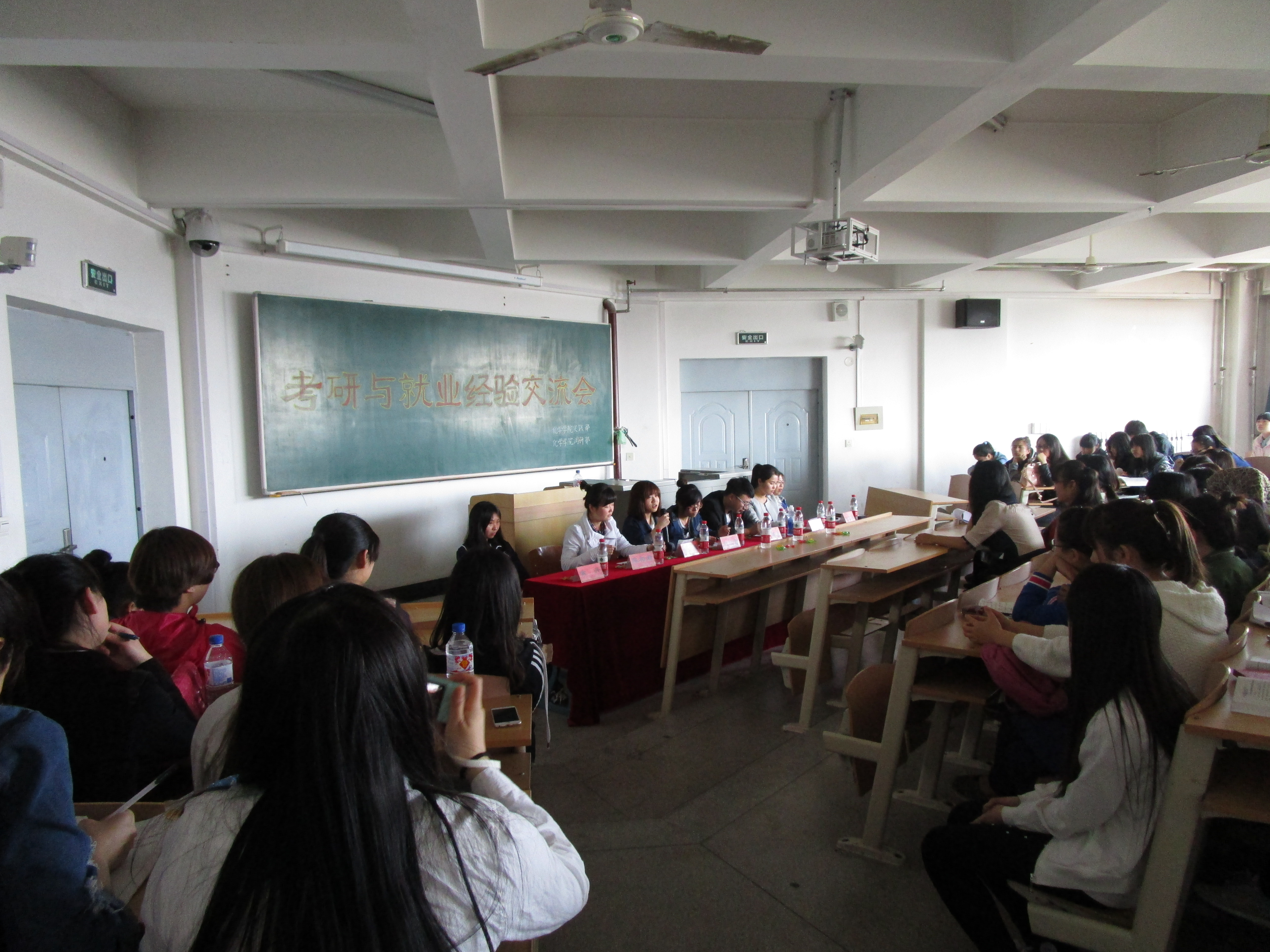 2015年4月26日,化学学院学生会在10611教室举办“考研与就业经验交流会”。交流会邀请了7位2011级学长讲解有关考研与就业的经验和体会,近两百名同学参加了本次交流会。