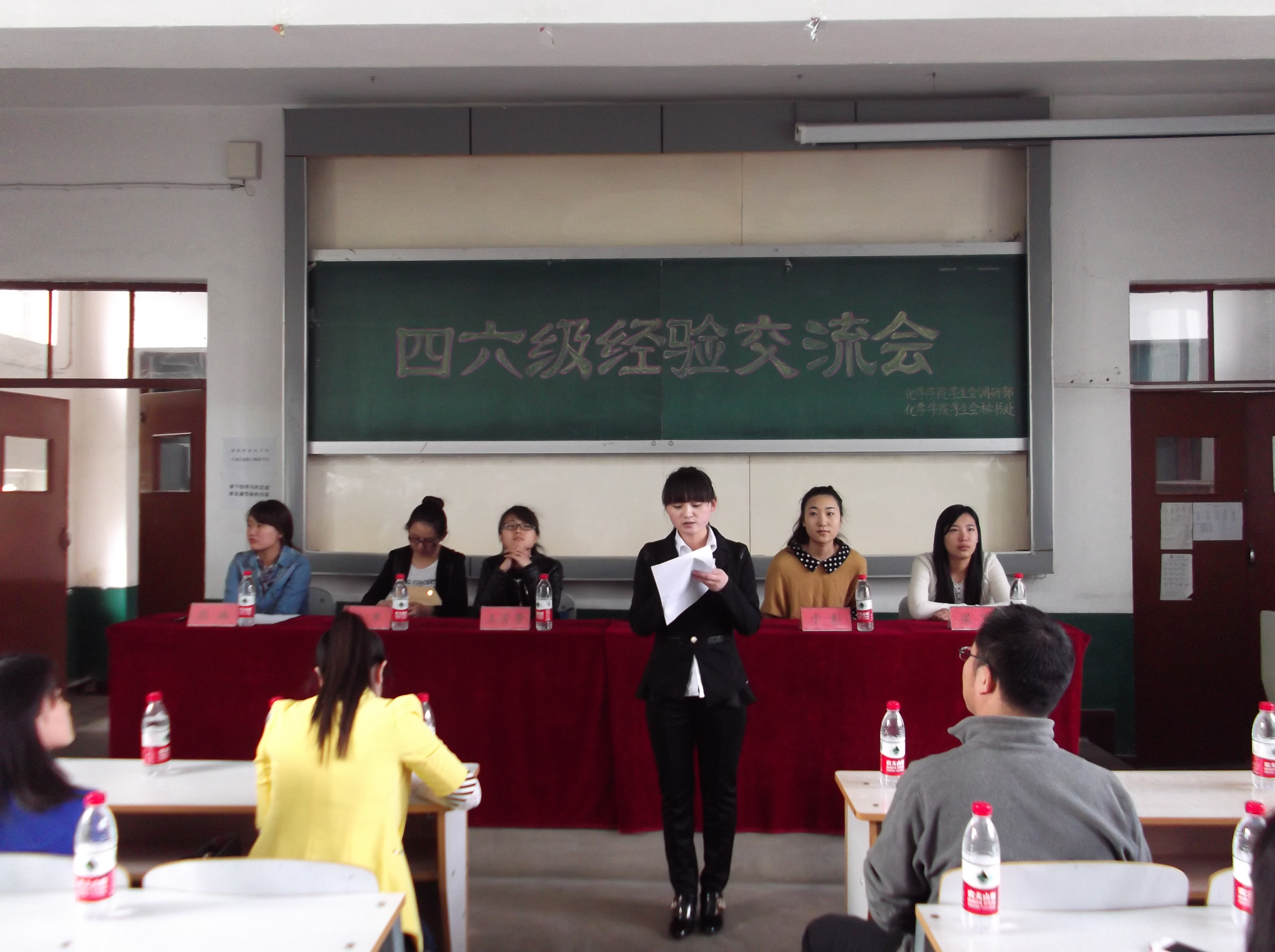 英语四六级经验交流会由在四六级考试中取得优异成绩的6位2012级学生作经验介绍,副院长姜大雨博士做现场指导,从英语四六级的重要性及如何备考英语四六级进行了有针对性的辅导。校学生会秘书处和调研部的负责同学应邀参加了活动。2013级学生听取了经验介绍。