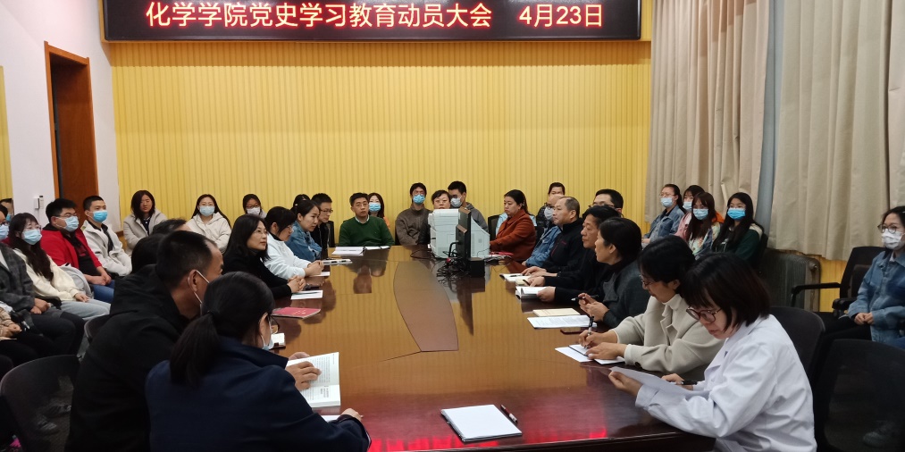 2021年4月23日下午15:30,在四教二楼会议室,化学学院召开了党史学习教育动员大会。学院全体班子成员、党总支全体委员、副科级以上干部、教师和学生党员参加会议。丁桂英主持会议。