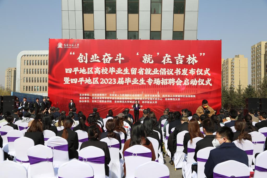 4月9日,四平地区高校毕业生留省就业倡议书发布仪式暨“创业奋斗‘就’在吉林”四平地区2023届毕业生专场招聘会在我校创新创业中心举行,旨在营造毕业生留吉就业、扎根吉林的浓厚氛围,进一步增进用人单位与毕业生双向了解,打造毕业生就业“直通车”。