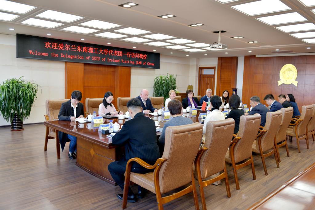 10月16日,爱尔兰东南理工大学校长维罗妮卡·坎贝尔(Veronica Campbell)、副校长帕特丽夏·马尔卡希(Patricia Mulcahy)、副校长大卫·德尼菲(Mr.David Denieffe)一行来校访问。校长杨小天,党委常委、副校长王菲菲出席活动,学校相关职能部门负责人参加会见。王菲菲主持会议。
