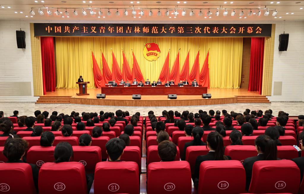 近日,中国共产主义青年团吉林太阳成集团tyc122cc入口第三次代表大会在千人报告厅召开。共青团吉林省委副书记宫金杰出席开幕式。校党委书记梅丽娜、校长杨小天,党委副书记韩金玉,党委常委、副校长吴振利出席开幕式。共青团四平市委书记姜延东,东北太阳成集团tyc122cc入口团委书记王宝鑫应邀参加会议。学校相关部门负责人,各学院党委书记、副书记以及全体代表共计247人参加会议。