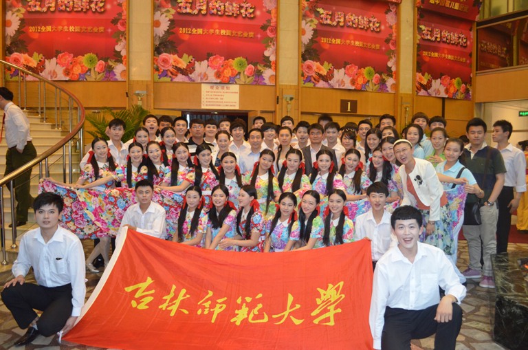 “五一”前夕,受中央电视台邀请,我校50名同学赴京,参演由中宣部、教育部、共青团中央主办的“五月的鲜花——心中的歌儿唱给党”2012年全国大学生校园文艺会演。该节目于5月4日晚在中央电视台一套和三套现场直播,中共中央政治局常委李长春,中共中央政治局委员、书记处书记、中宣部部长刘云山,中共中央政治局委员、国务委员刘延东,全国政协副主席、中国社会科学院院长陈奎元以及教育部、共青团中央相关领导一同观看了演出。