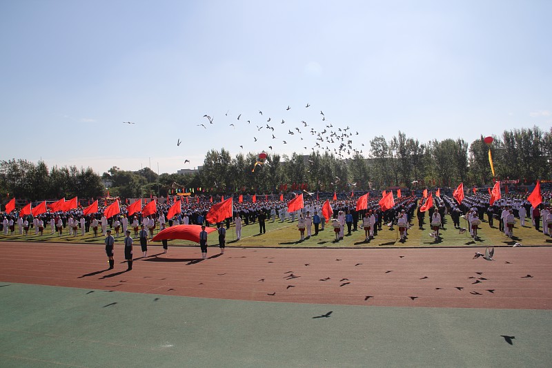 9月14日上午8时,伴着激昂的运动员进行曲,各检阅方队整齐有序地进入运动场。每一个方队都进行了独特的设计和精心的编排,充分展现出各班级的特色与师生朝气蓬勃的精神面貌。