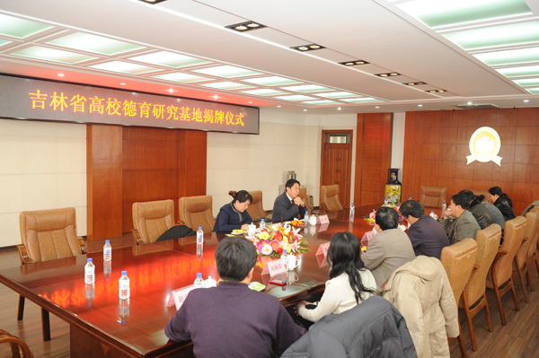 12月13日上午,我校在第一教学楼八楼会议室举行吉林省首批高等教育研究基地——高校德育研究基地揭牌仪式。吉林省教育科学院院长、教科规划办主任张旺研究员,省教科规划办常务副主任杜亚丽研究员,我校党委书记张波教授、副校长杨景海教授出席会议,科研处及学校相关部门负责人参加了会议。