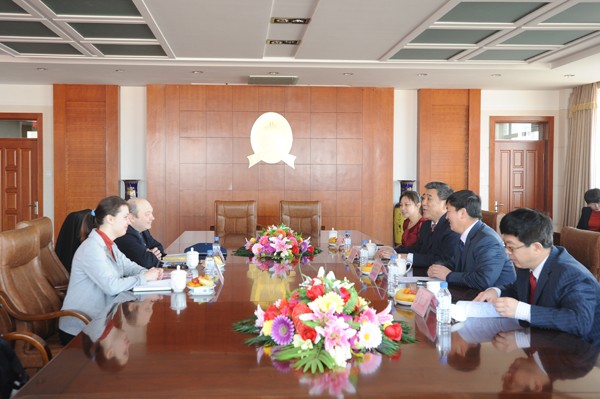 3月25日上午,学校党委书记张波、副校长杨景海在第一教学楼八楼会议室会见了来访客人。双方回顾了2011年正式建立友好校际关系以来的交流与合作情况,介绍了各自学校近年来的发展情况,并就我校建立境外实践基地和今后如何进一步加强交流与合作交换了意见。会后,来访客人参观了我校满族民俗馆、历史文物室、八旗谱牒馆、满族佟佳氏博物馆和福文化博物馆。