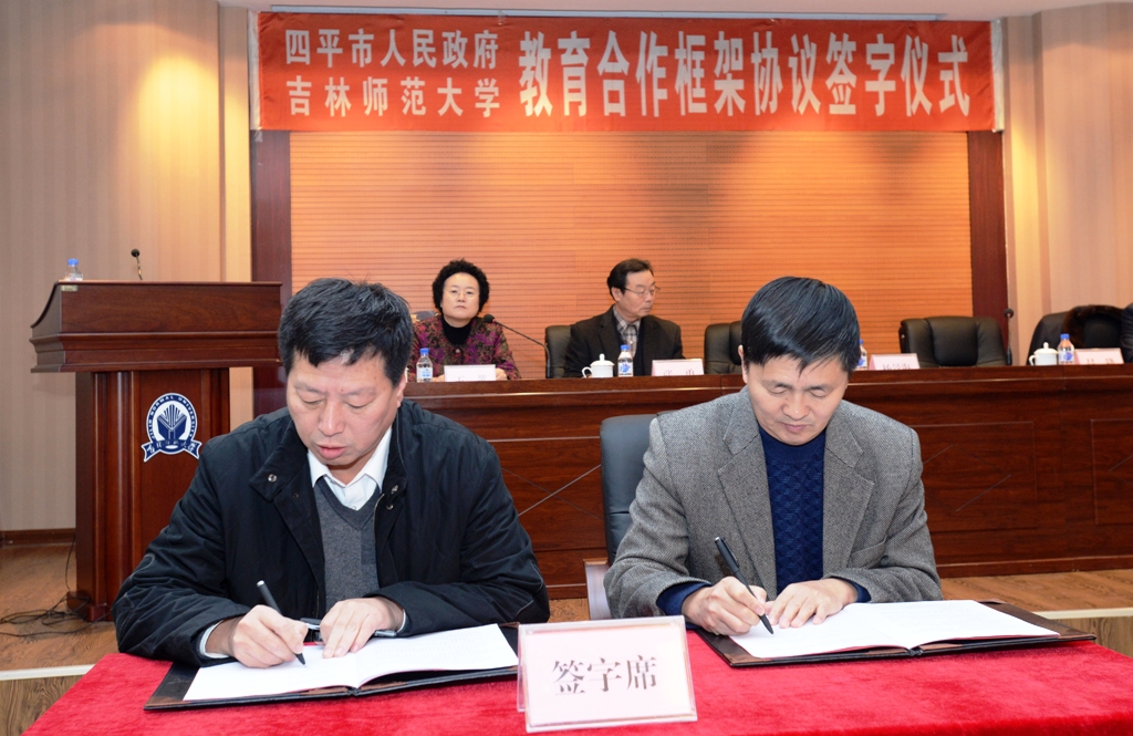 12月18日,我校与四平市人民政府教育合作框架协议签字仪式在图书馆会议室举行。四平市人民政府副市长吕锋,我校校长杨景海,副校长张勇出席签字仪式。四平市教育局及四平市各县市区教育局,我校各教学单位院长、相关职能部门负责人参加签字仪式。