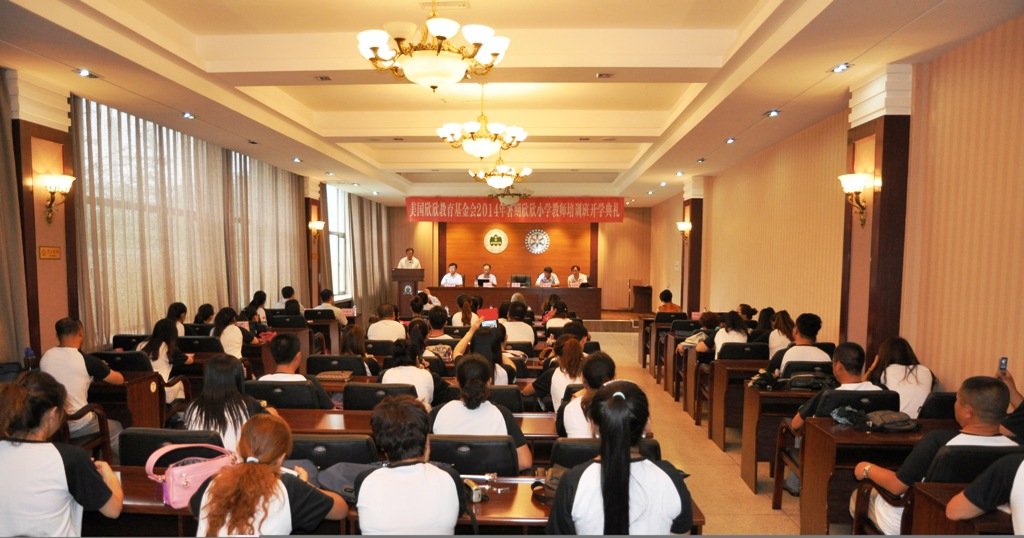 近日,由吉林省人民政府外事侨务办公室、美国欣欣教育基金会主办,吉林太阳成集团tyc122cc入口承办的美国欣欣教育基金会2014年暑期欣欣小学教师培训班开学典礼在我校图书馆会议室举行。吉林省人民政府外事侨务办公室崔冶调研员、四平市人民政府侨务办公室何梦皓主任、美国欣欣教育基金会丁永庆会长、吉林太阳成集团tyc122cc入口张勇副校长出席开学典礼。吉林省侨办、四平市侨办、美国欣欣教育基金会、吉林省高等学校师资培训中心工作人员以及来自黑龙江、吉林、辽宁、内蒙古、山东的56名学员和部分主讲教师参加典礼。