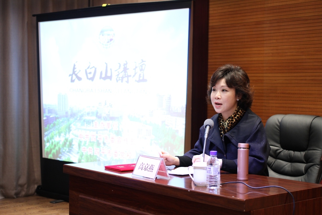聘任仪式结束后,高京燕做客长白山讲坛,为我校师生作了题为《领导者的责任使命与方法路径》的专题报告。